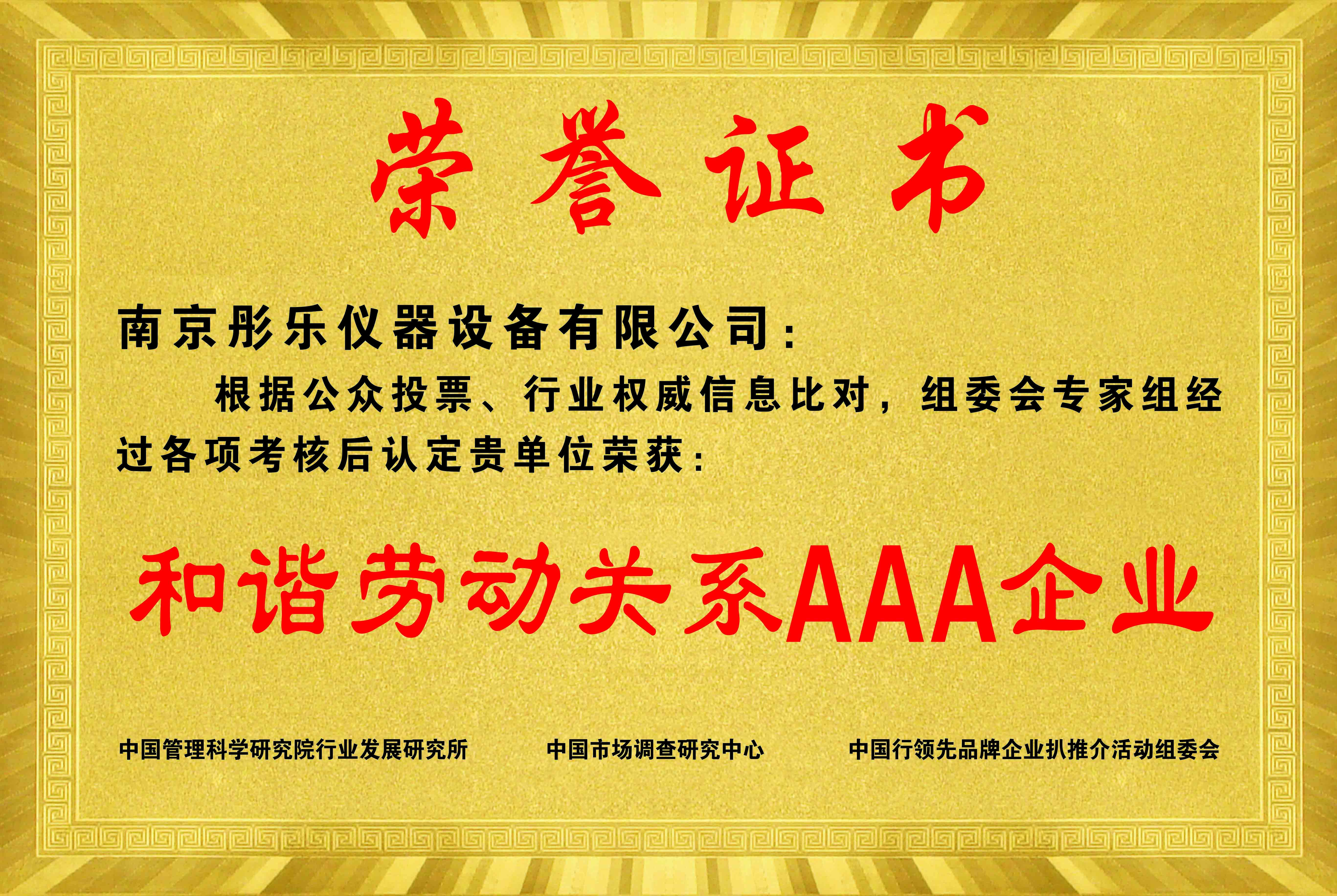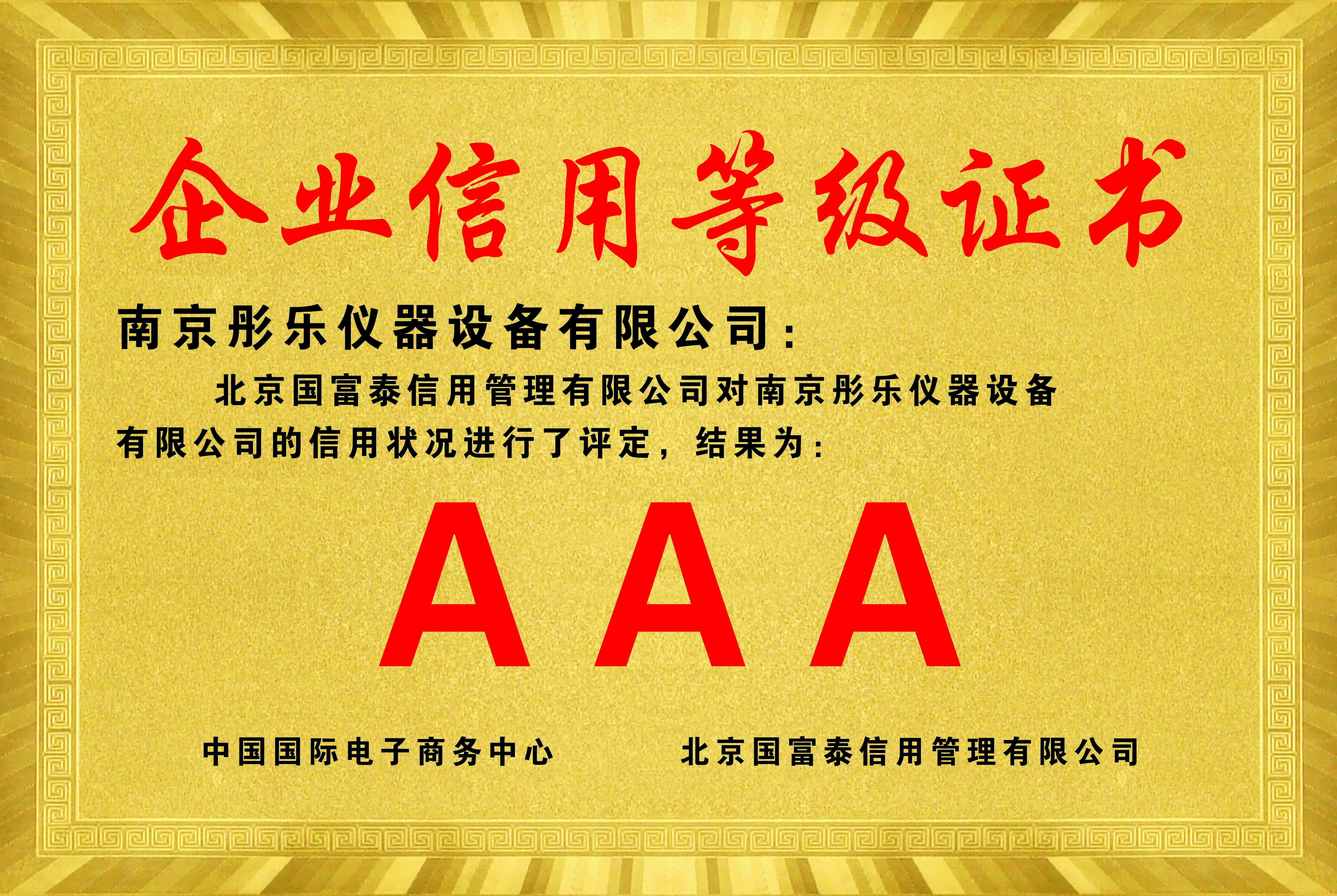 企業(yè)信用等級證書(shū)AAA