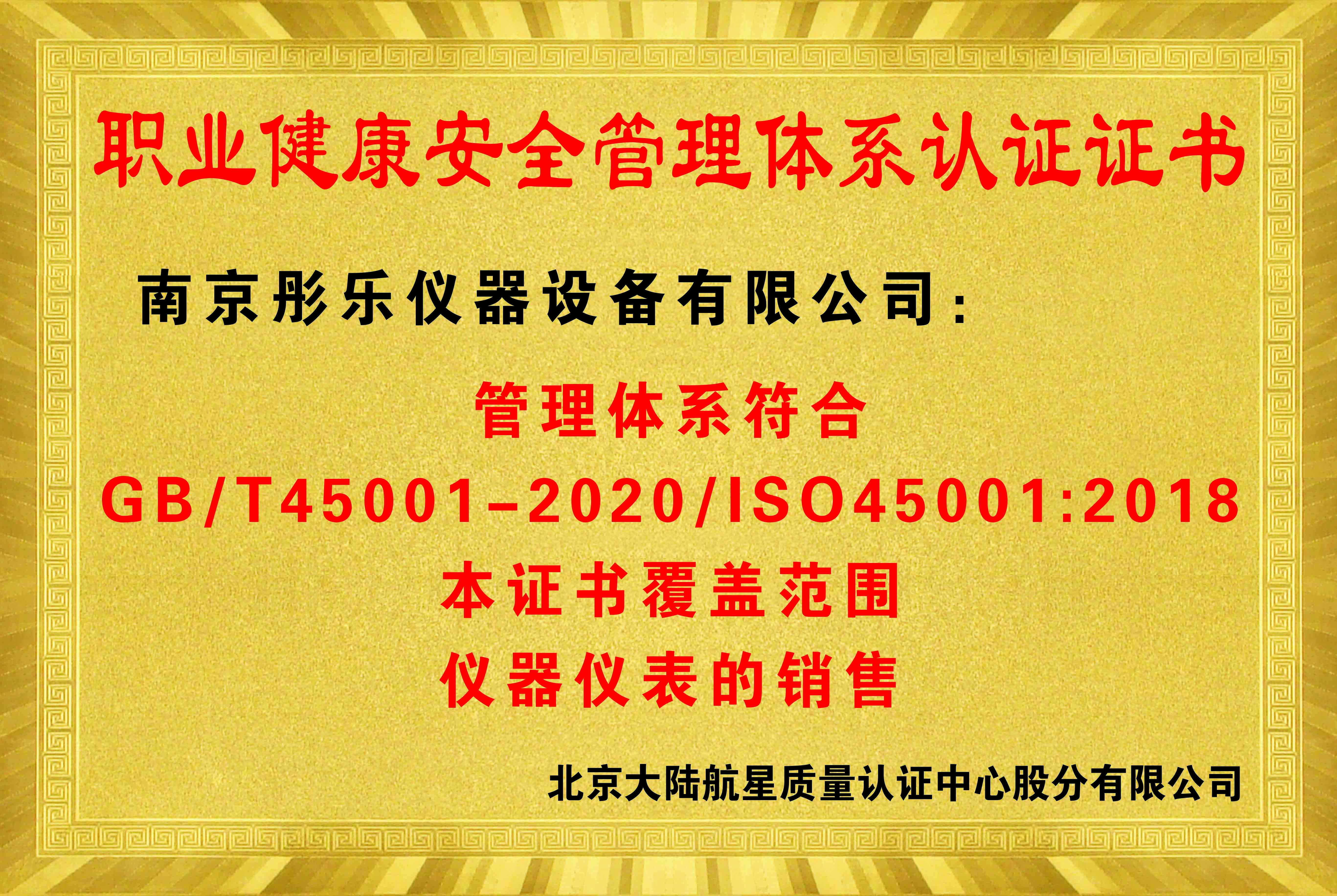 職業(yè)健康安全管理體系認證證書(shū)