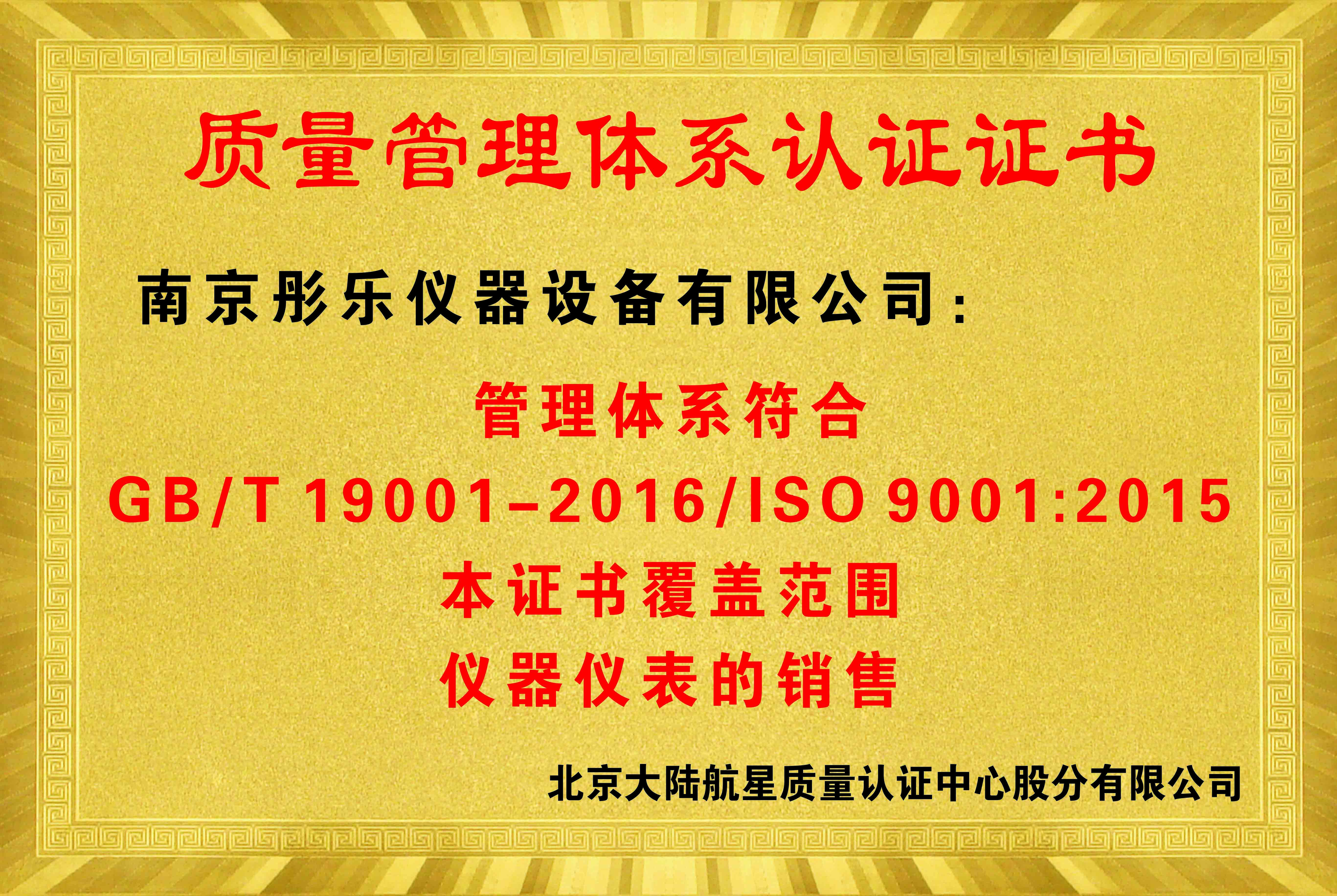 質(zhì)量管理體系認證證書(shū)