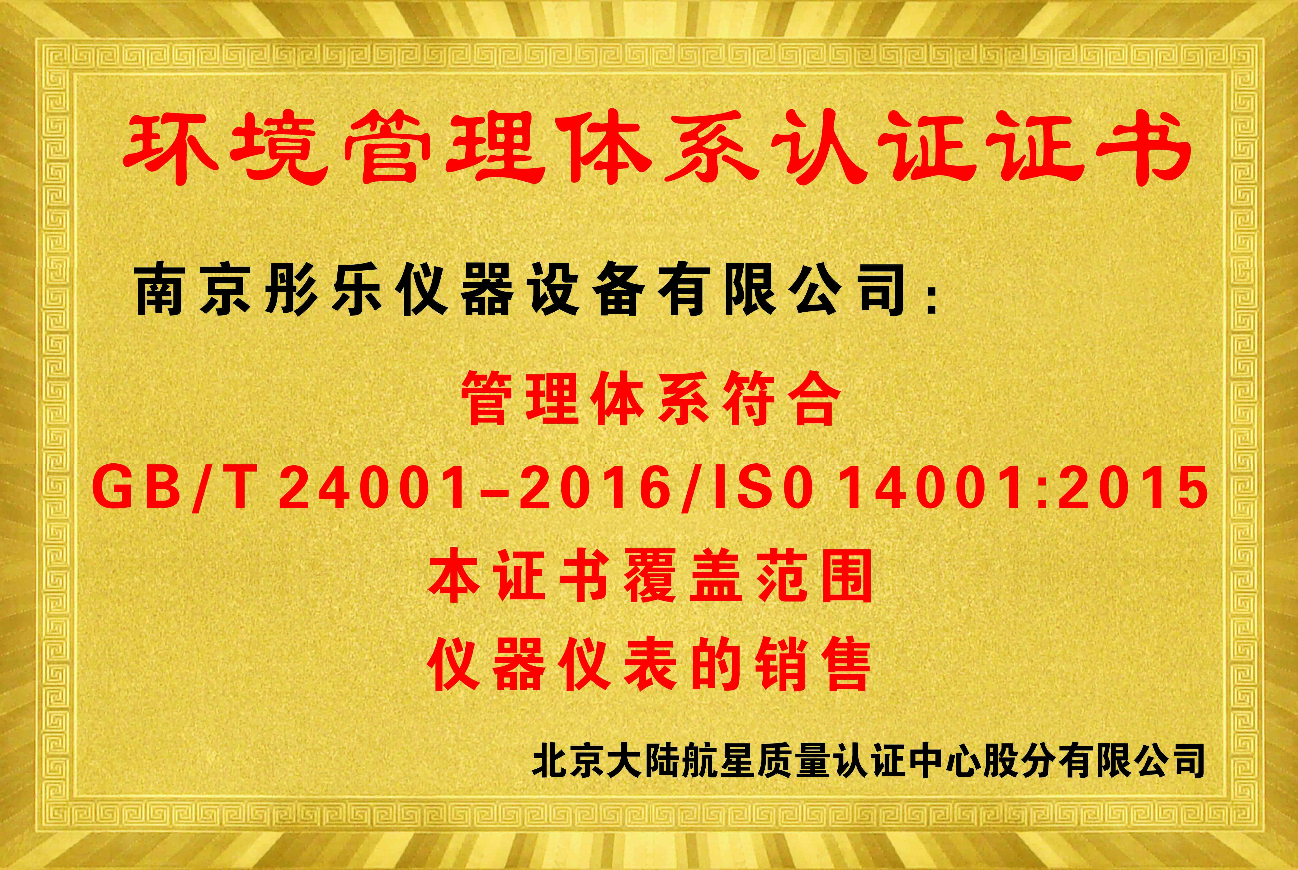 環(huán)境管理體系認證證書(shū)