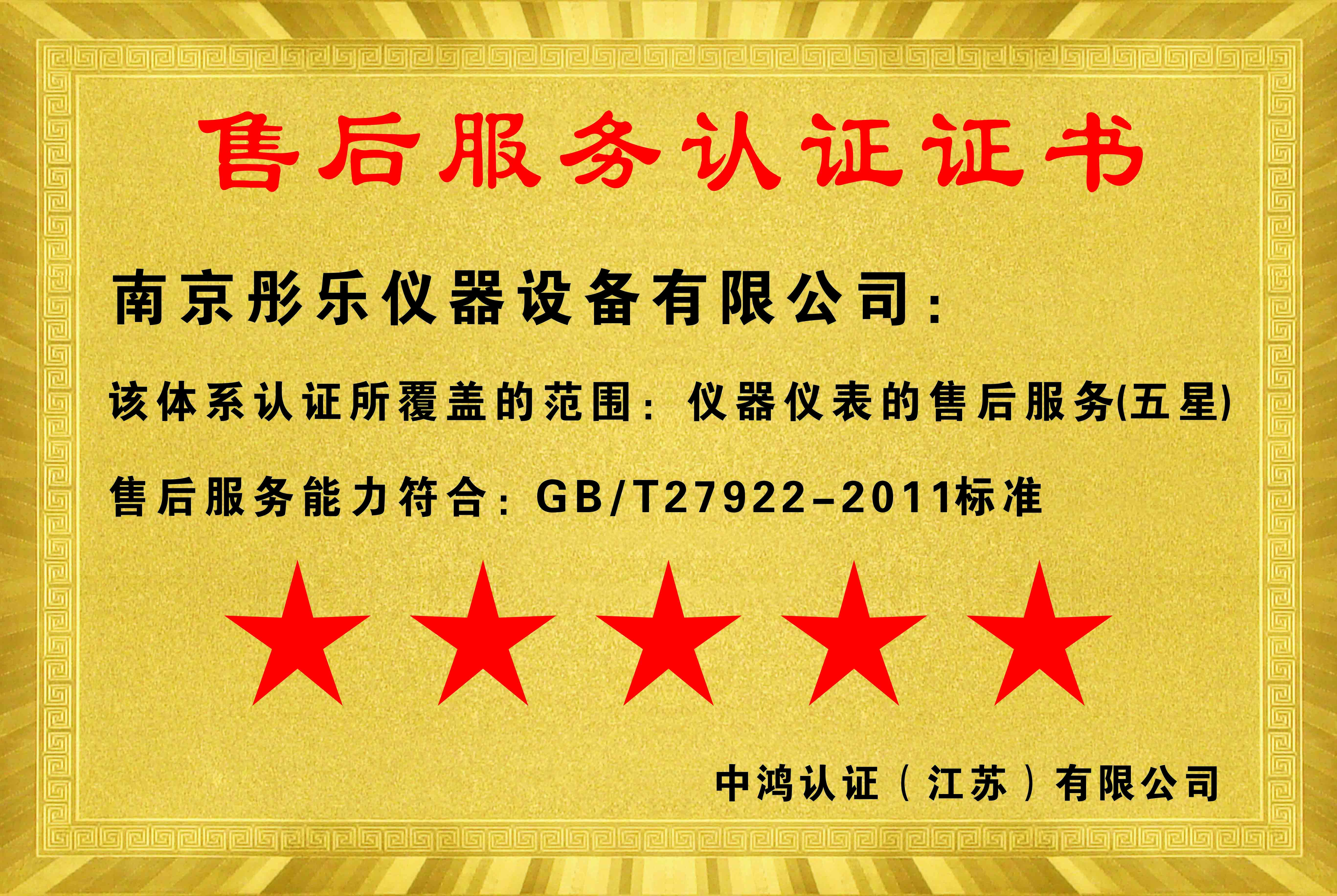 售后服務(wù)認證證書(shū)